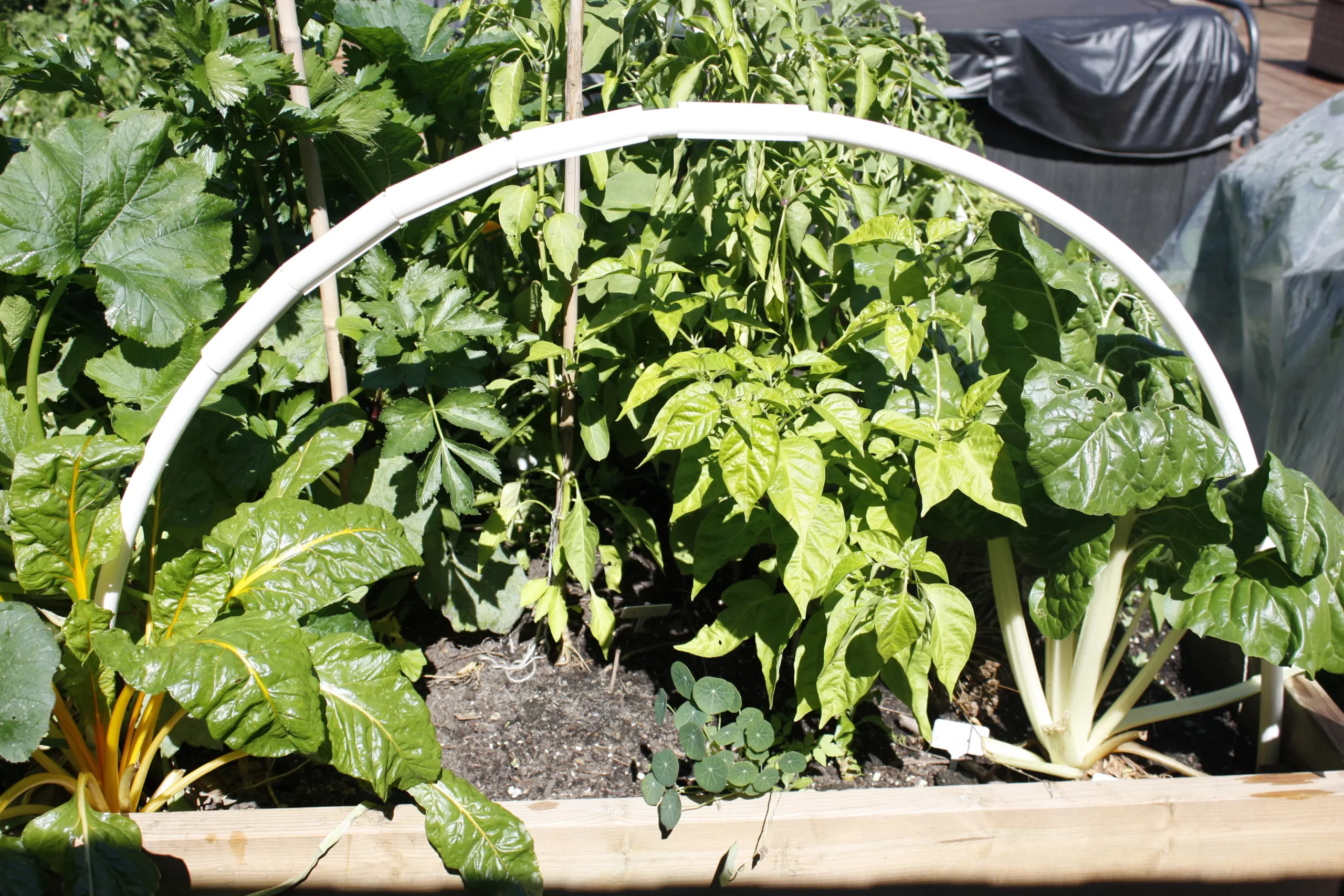 If you’re adding them to pots, you can use two pieces of piping and criss cross them over each other to create a dome, and then you can add the poly, insect netting or shade cloth over top of it. You can secure the cover with clips, butterfly clips or even rocks on the edges of the container.
