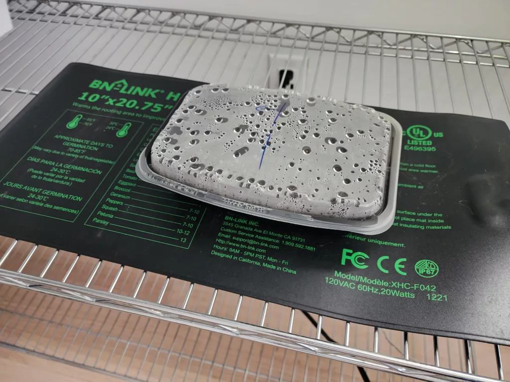 The next issue is turning the heat mat off too early. The general rule of thumb is to not turn it off until over 75% of the seeds have germinated. Once you plug it in, you keep the mat on 24/7 until the seeds germinate. If you turn it off too early it can really slow down the other seeds from germinating because they rely on the heat.