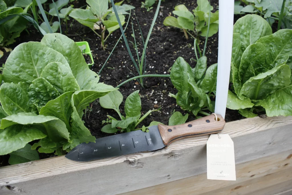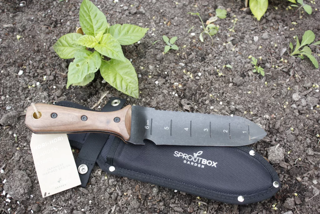 A Hori Hori knife is a multi-use garden tool that originates from Japan, often referred to as “the swiss army knife of the garden”. These knives can cut, prune, dig and weed making them useful for multiple tasks around the garden.