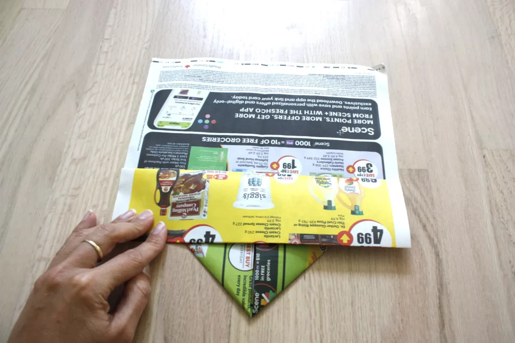 Before we get any further into this tutorial, I did want to mention that it’s important for you to research if the ink on your flyers or newspapers are organic or not. The ink used in flyers and papers are generally either petroleum based or plant-based using soy or corn.