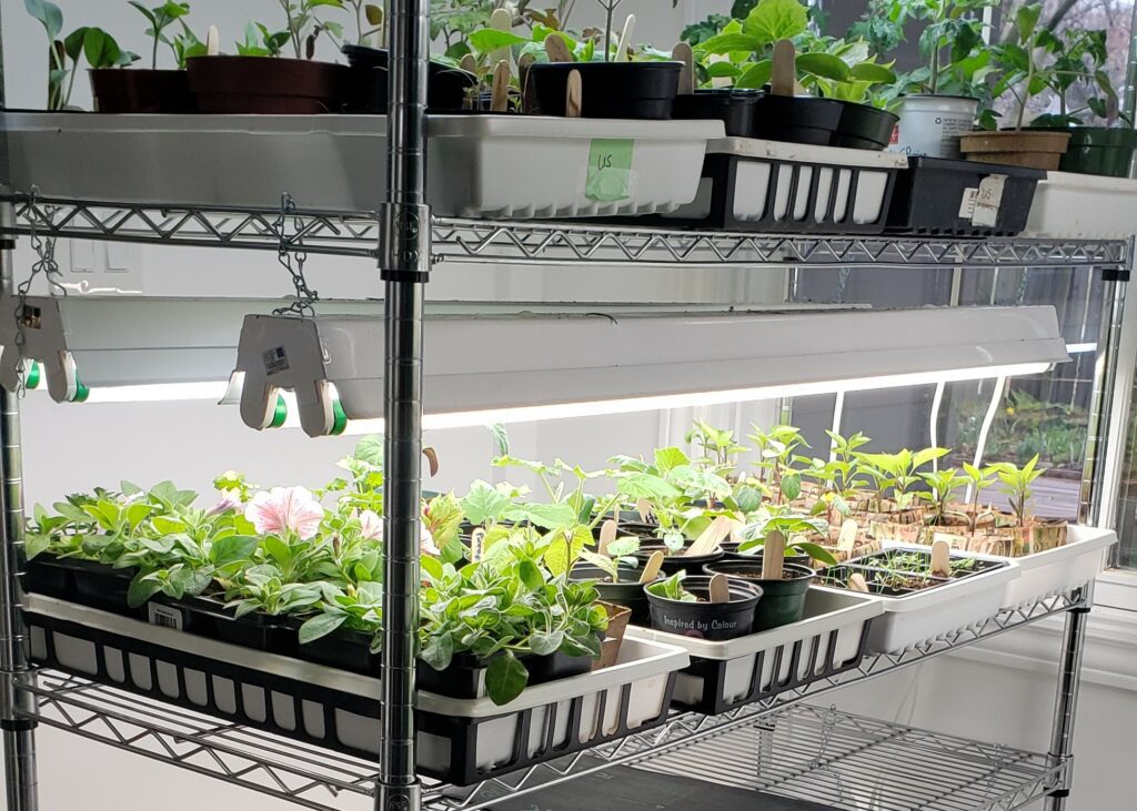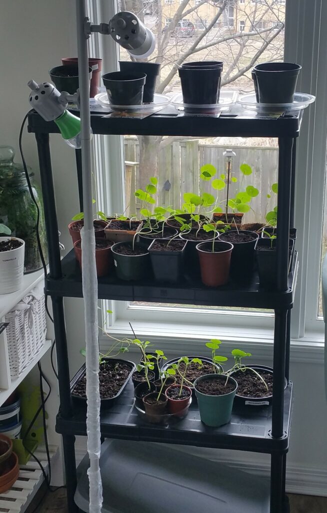 You can grow seeds on a window sill, however the winter sunlight in Canada isn’t strong, and the number of hours is short. What this means is that your seedlings will stretch for light which affects the strength of the plant. The good news is that grow lights are super affordable and will help you grow stronger seedlings.