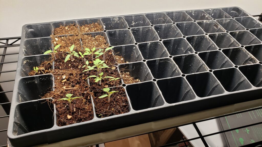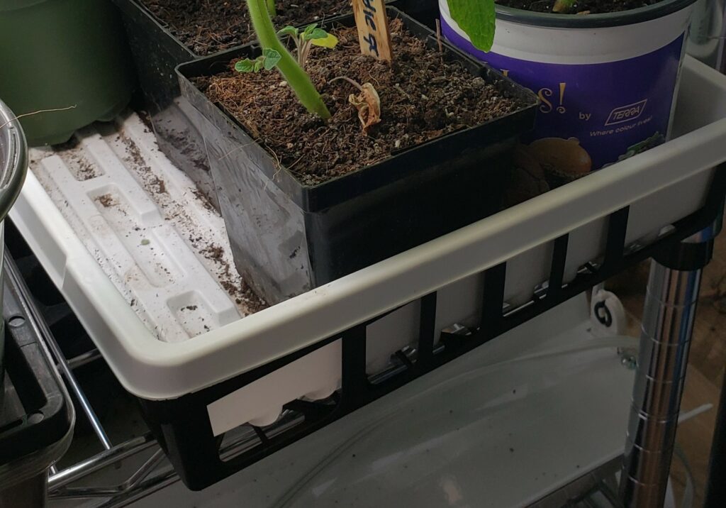 It is possible to grow plants in pots, on a storage bin lid and avoid using trays, but trays are an easy way to grow seedlings and keep them organized. Pots will get the job done, but they come with some complications. First, pots are tall so a heat meat isn’t effective at warming up the soil when you first plant seeds. Second, they require a lot of soil in the beginning to start your seeds, and most seeds don’t like being planted in large containers. Third, the pot shapes don’t always match so they take up a lot of space because they fit together awkwardly. And finally, it’s difficult to put a heat dome over pots because of their size and shape.